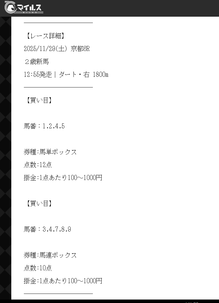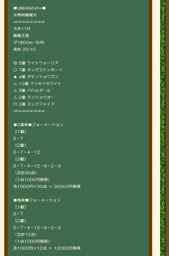 日曜日の買い目も外れていましたね💦 どんまいっす