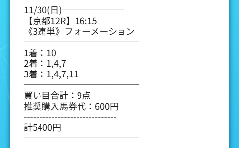 11月最終週の競馬開催週でしたけど、日曜日に19万もの的中貰えました。 2~3着がヒモ荒れしたけどしっかり押さえた情報でしたね、これで負ければ給料日までカツカツだったので命救われました。
