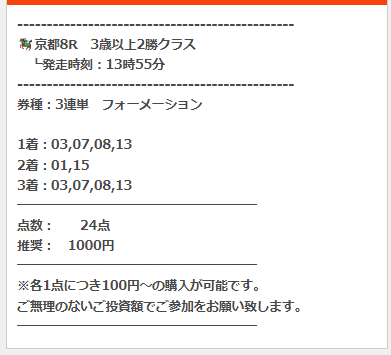 1点予想で2万1600円はおいしいな!継続して使ってみよう