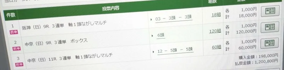1点500円で馬券買っていたから一撃18万4800円獲得、地味に荒れたから的中嬉しすぎます。