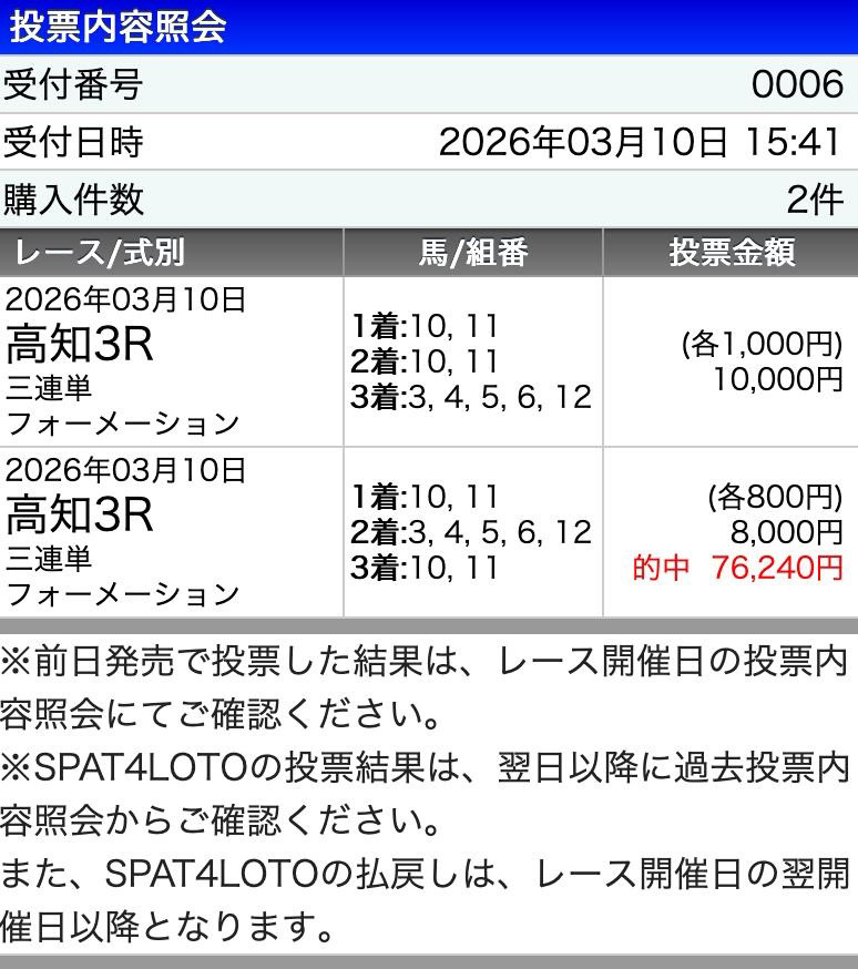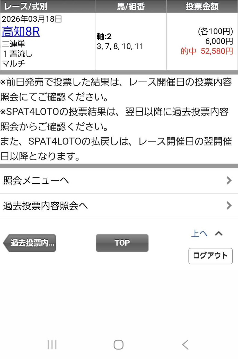 一発逆転!高知ファイナルレースで100円だけど5万円以上ついて最高でした! またこんな的中いっぱいくださいっ!
