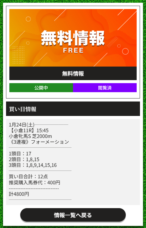 明日も重賞無料で出るよね?楽しみにしています!