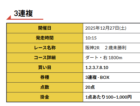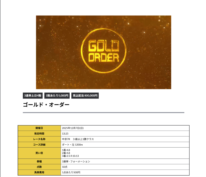 少点数買い目のご提供!