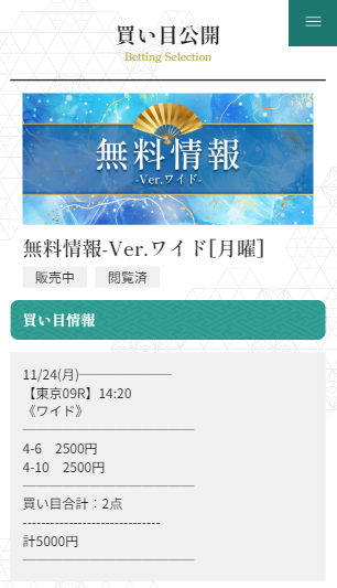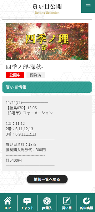 少点数買い目のご提供!