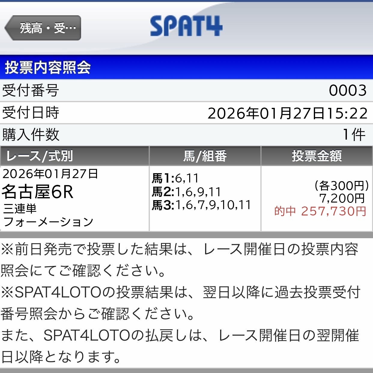 6千円の馬券代が10万越え、立派な成績だと、考えています。 継続は、力なり、今週も地方競馬、利用させてもらいます。
