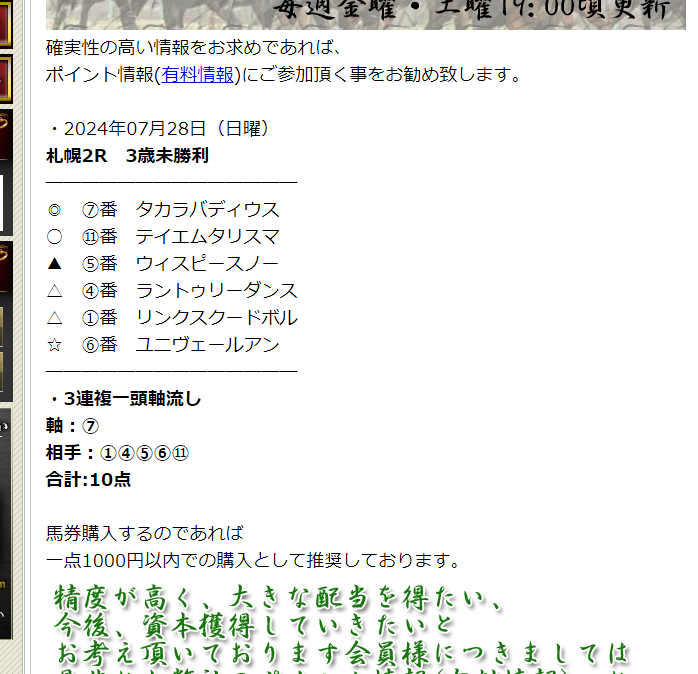 約束された万馬券の買い目が届く!
